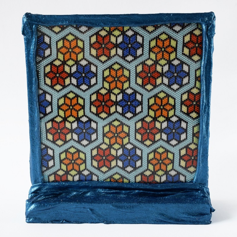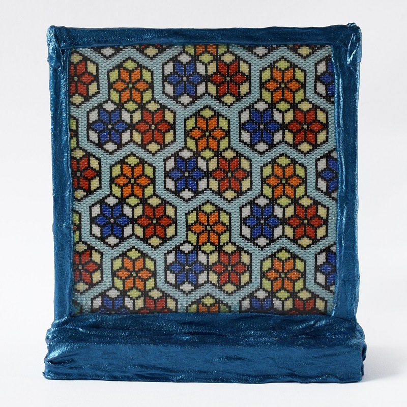 Ez az apró gyöngyös, kék szníű, mozaikos kép egy lakás vagy iroda büszkesége lehet a gyönyörű színeivel. Különlegessége, hogy bárhova kitehető – akár asztalra vagy egy elválasztó polcra, mivel mindkét oldalán látszik a minta…
