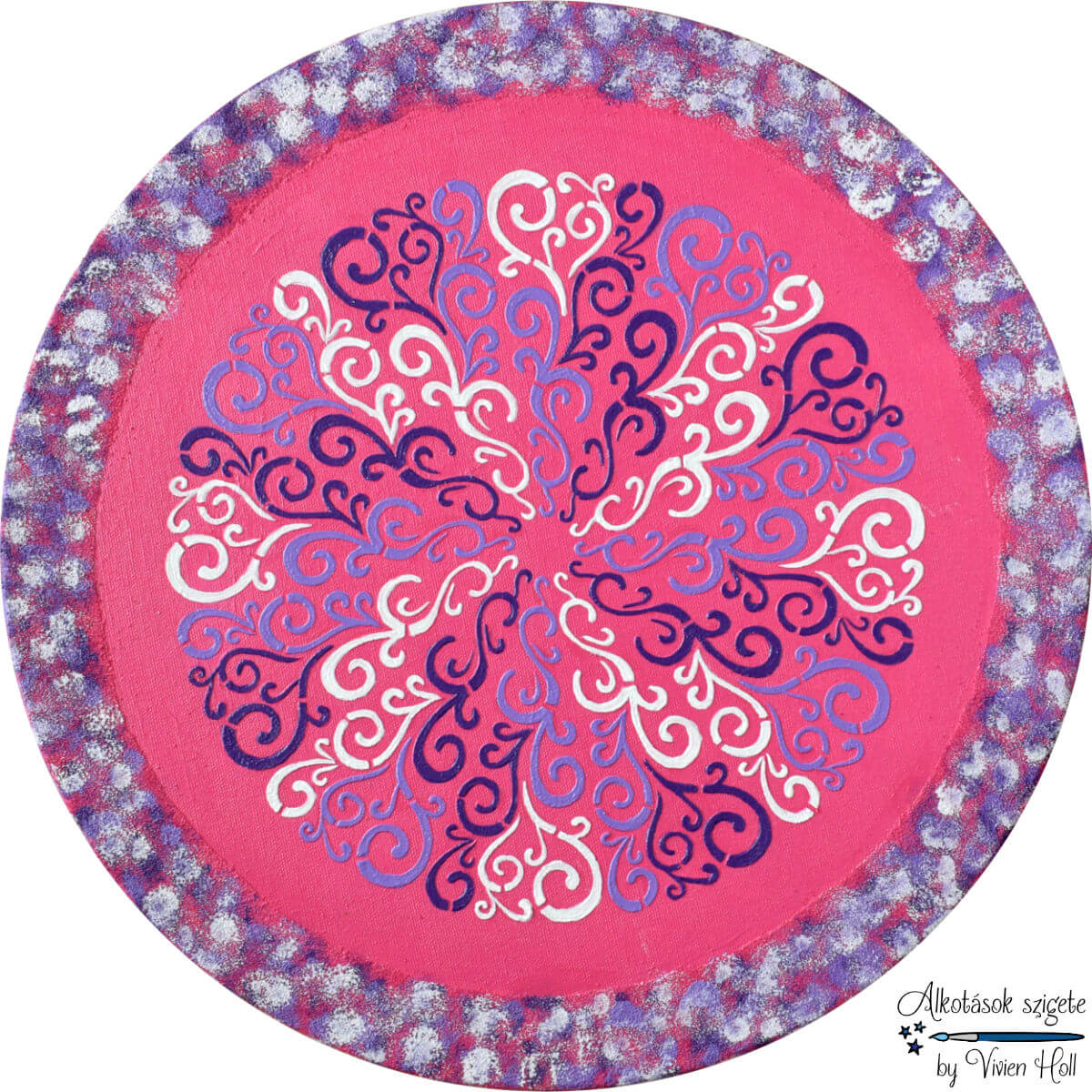 Mi lehet ez a különleges minta? Magenta alapon lilás és fehér kacskaringók tekeregnek mindenféle különleges formába… 🩷