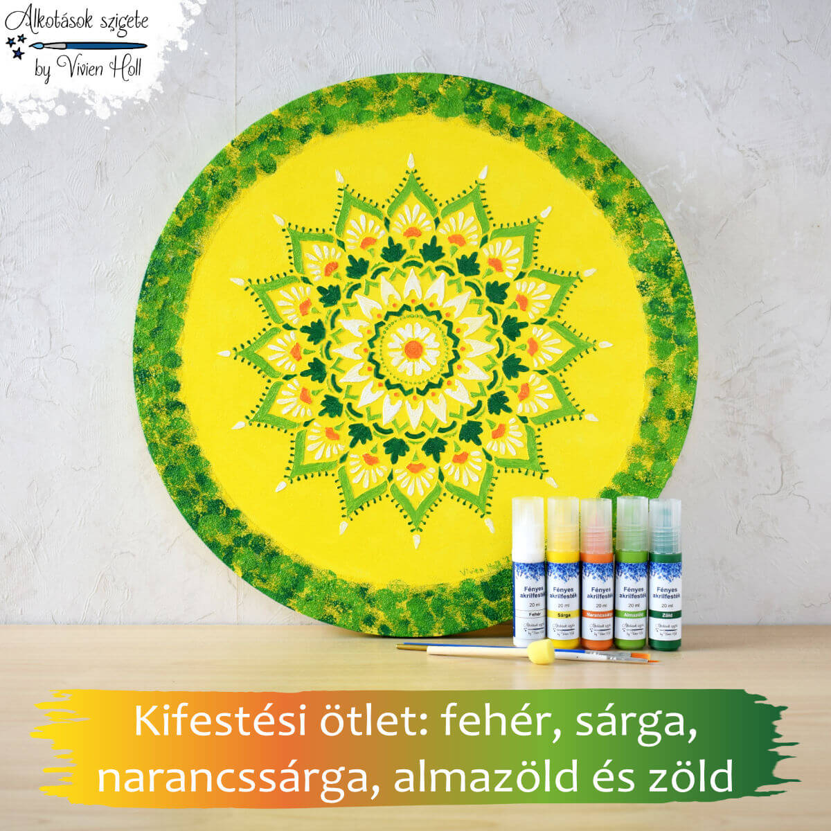 - akrilfestékek (vagy tempera). Tipp: a háttér kifestéséhez kb. fél tégely 50 ml-es vagy 1 db 20 ml-es Pentart festéket használtam fel. A fotókon pedig egy kifestési ötletet láthatsz, bátran használj más színeket! További festési ötleteket ezen a linken találsz: Domborműves mandalák – saját és foglalkozáson készültek – ezeket az élményfestő csomagnál is tudsz rendelni.
